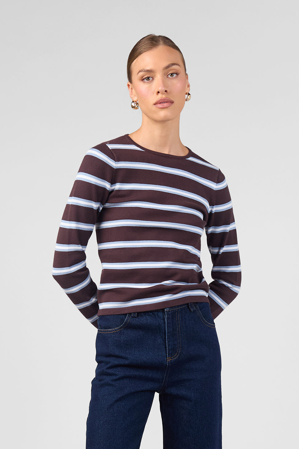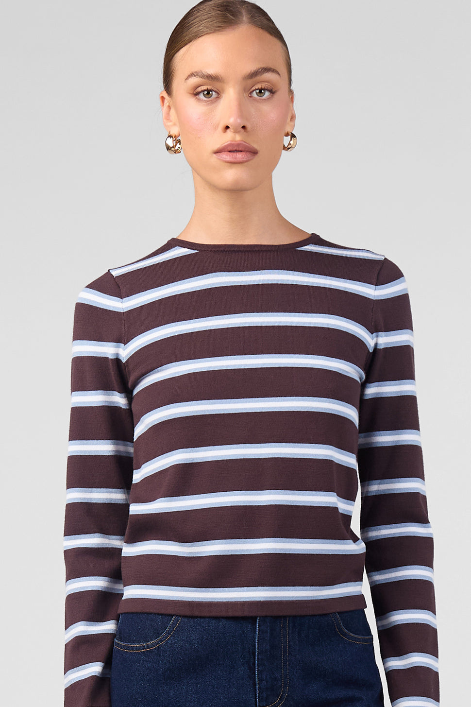 STRIPE LONG SLEEVE KNIT TOP